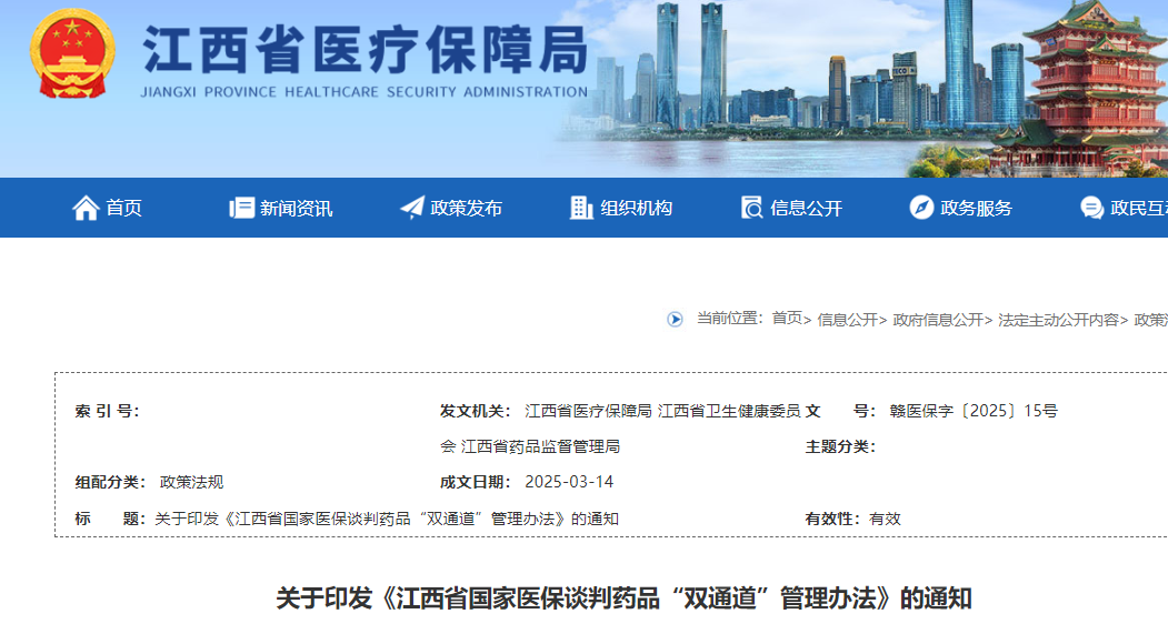 此前,江西省医保局、江西省卫生健康委、江西省药监局联合印发了《江西省国家医保谈判药品“双通道”管理办法》,里面指出:“双通道”药店要至少配备2名注册在药店并参加基本医疗保险的执业药师。